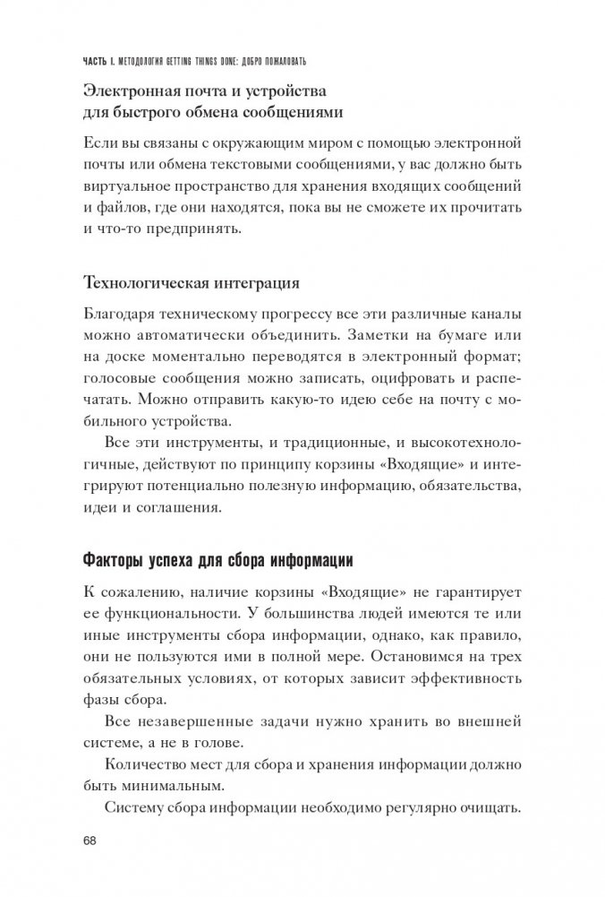 Getting Things Done — не просто о том, как привести дела в порядок. Это о том, как грамотно справляться с работой и личной жизнью. Эта методика — результат двадцатилетней работы автора. Среди российских менеджеров она стала мегапопулярной еще до перевода книги на русский язык в 2007 году.