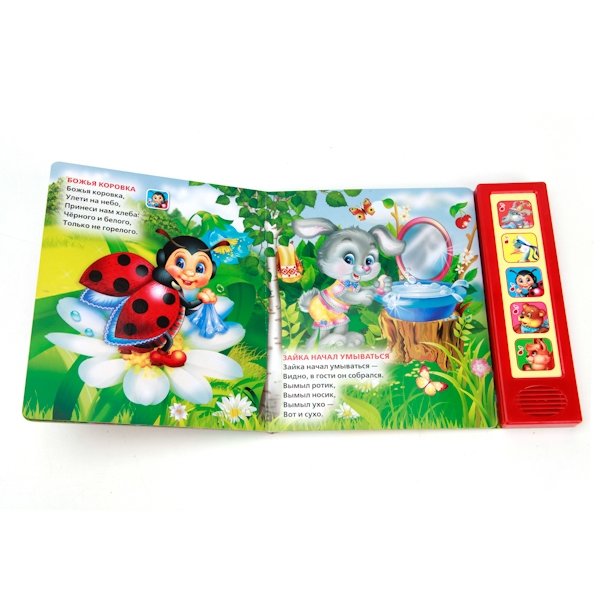 Старые добрые песенки нацелены на воспитание нравственных качеств у ребёнка. Нажимая на нотки, ваш малыш сможет послушать известные песенки, запомнить их и петь вместе с любимыми героями.