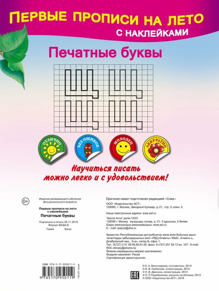 Печатные буквы серии "Первые прописи на лето с наклейками"