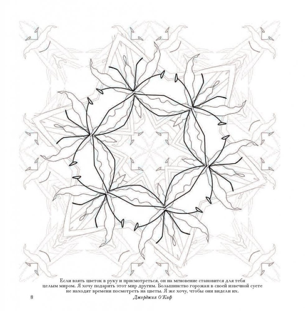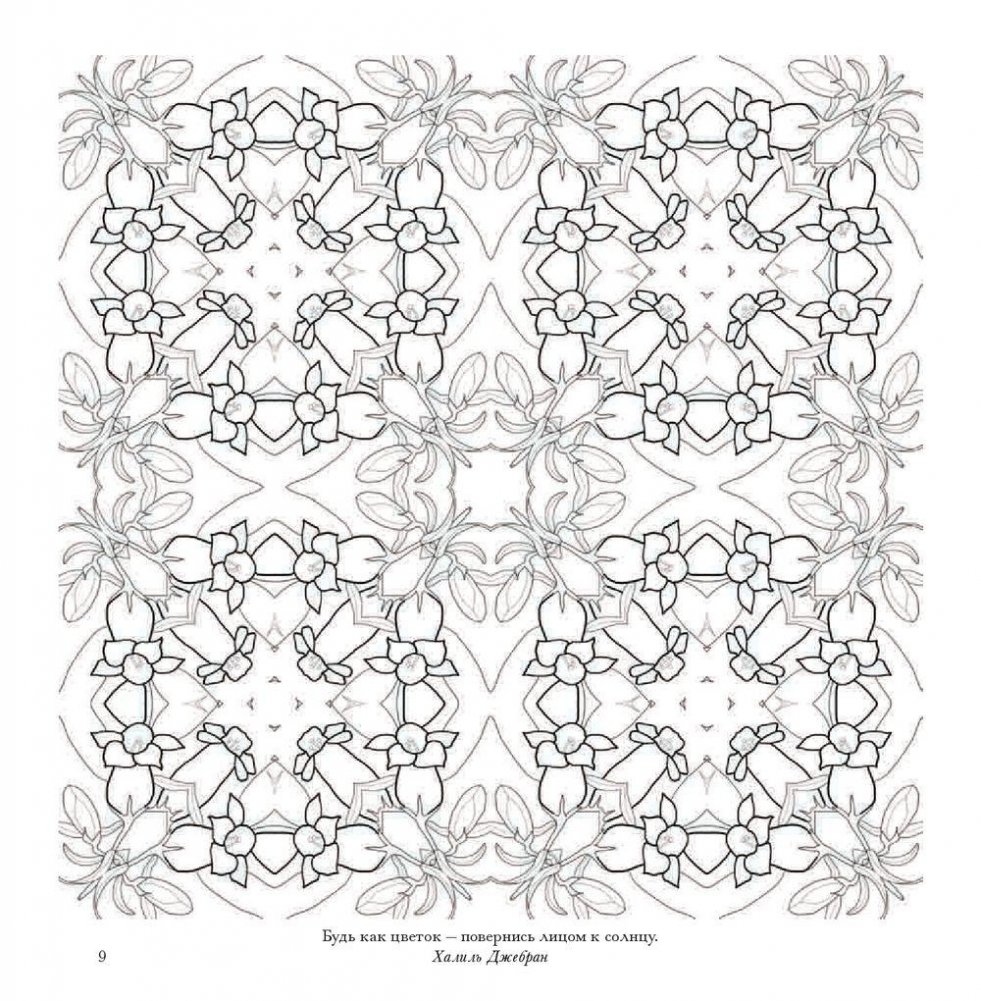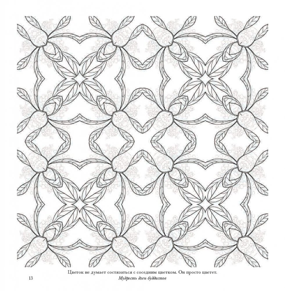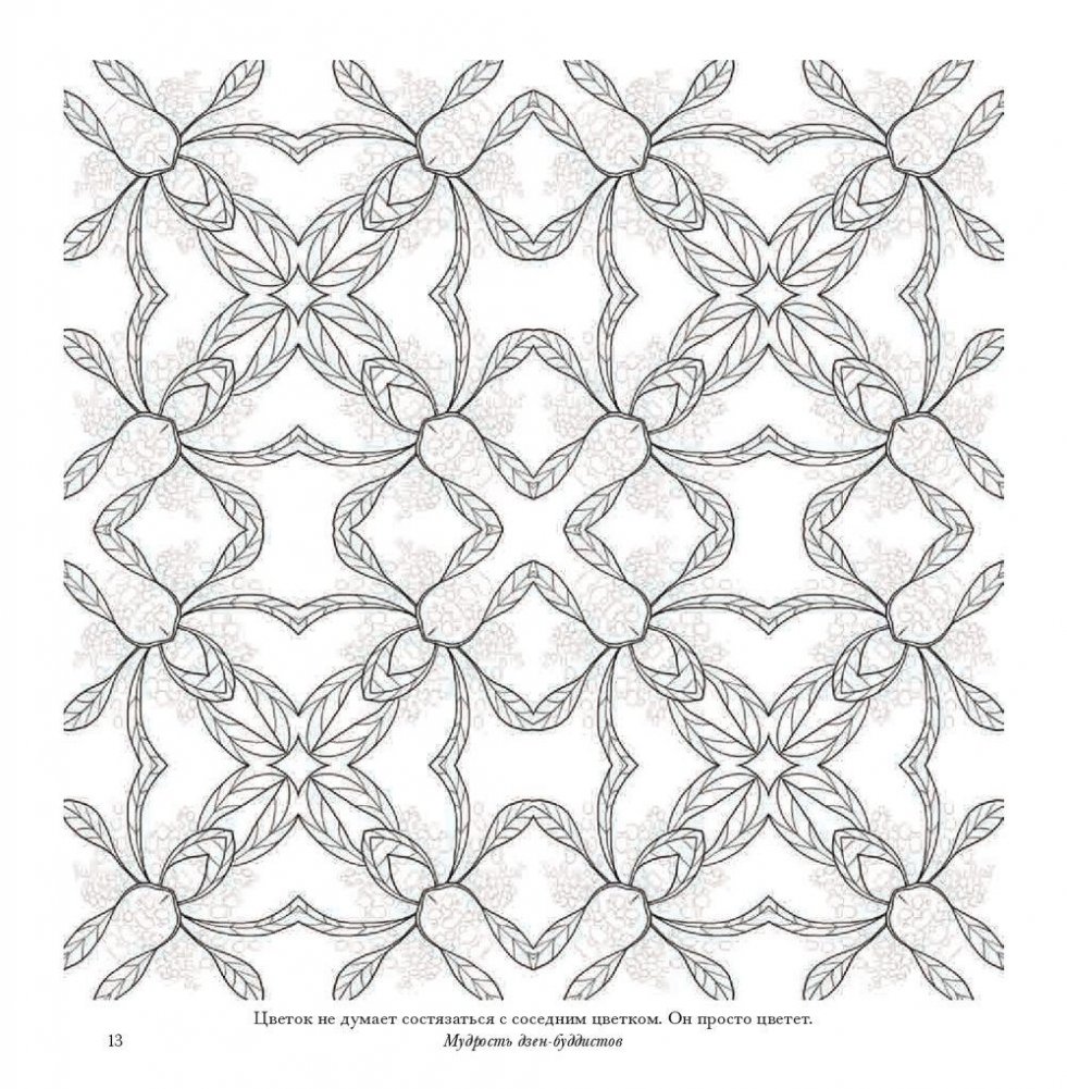 В этом альбоме вы найдете рисунки, созданные специально для того, чтобы наполнить вас вдохновляющей и исцеляющей энергией цветов. Геометрический калейдоскоп представленных здесь орнаментов заряжен красотой и творческой энергией природы. В их основе - удивительные растения, которые можно встретить в разных уголках Австралии: в пустынях, тропических лесах, на равнинах, в горах и на побережье. Раскрашивайте эти волшебные узоры фломастерами, карандашами, красками - чем угодно, лишь бы это успокаивало ваш ум и вдохновляло сердце.