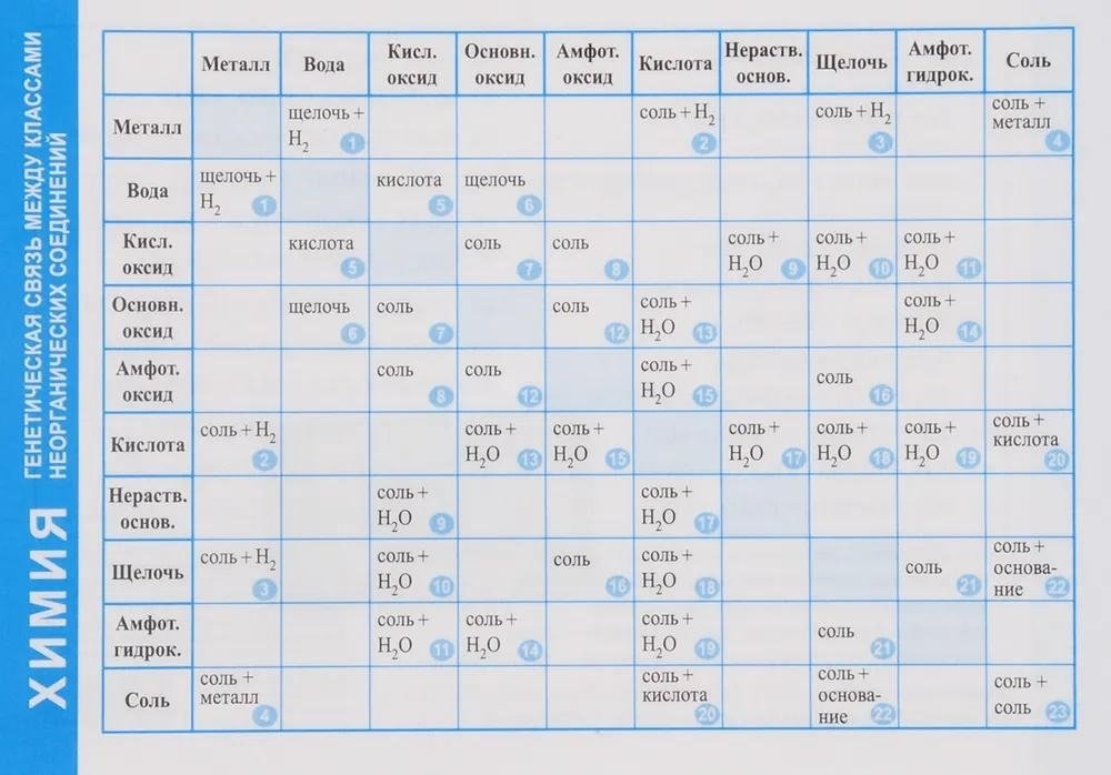 Справочные материалы. Химия. Генетическая связь между классами неорганических соединений