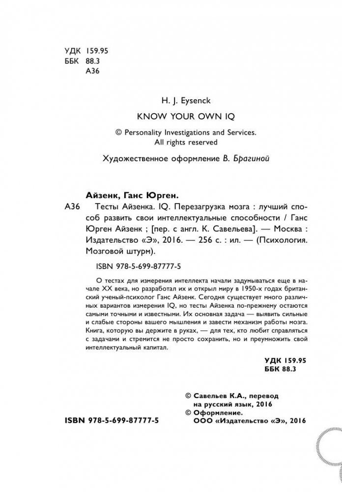 Тесты Айзенка. IQ. Перезагрузка мозга. Лучший способ развить свои интеллектуальные способности