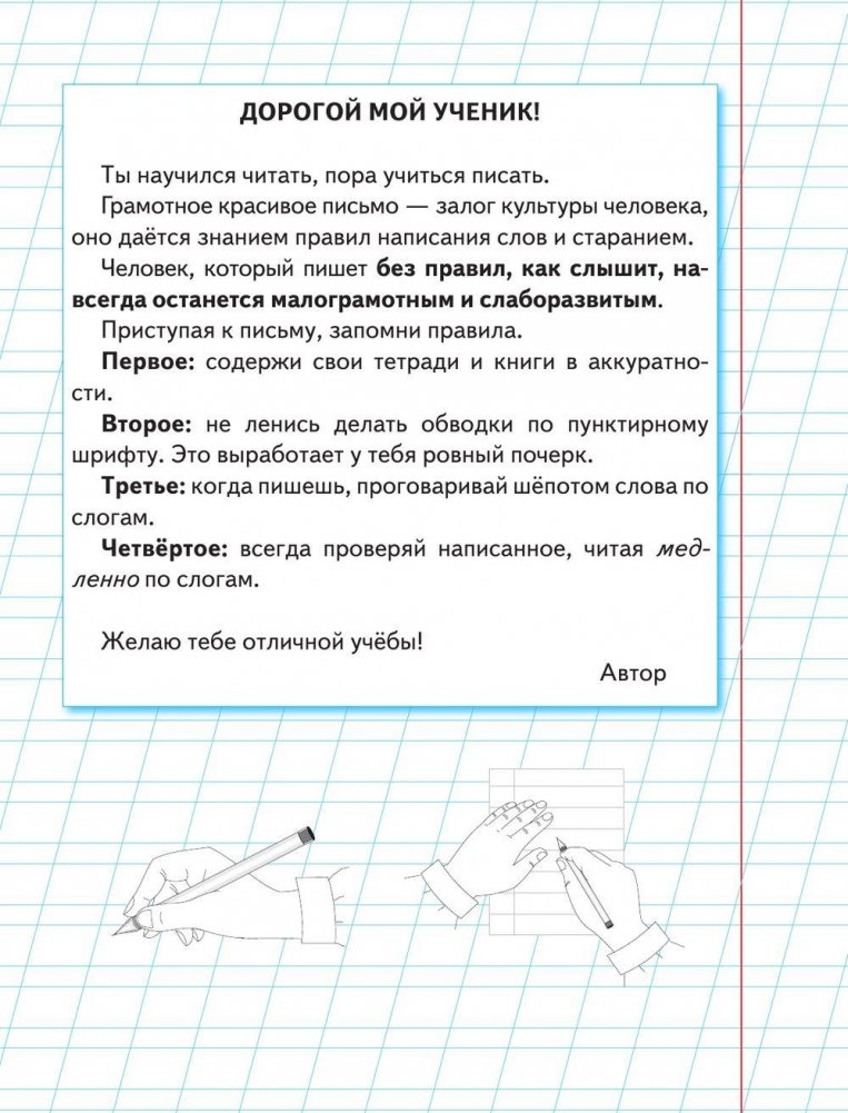 В основе обучения дошкольника письму по авторской методике Н.С. Жуковой лежит слоговой принцип русской графики. Слог выступает в качестве единицы письма, в которой написание (и чтение!) гласной и согласной букв взаимообусловлено и представляет собой цельный графический элемент. Прописи имеют сугубо практическую направленность и могут использоваться в качестве приложения к книге Н.С. Жуковой «Букварь». Поскольку темп обучения письму у всех детей разный, следите за тем, чтобы задания и упражнения были доступны ребёнку. Внимательно читайте примечания, помещённые в нижней части страниц. Если Вы хотите дать детям более углублённые знания по фонетике и грамматике русского языка, рекомендуем обратиться к учебному пособию Н.С. Жуковой «Я пишу правильно!»