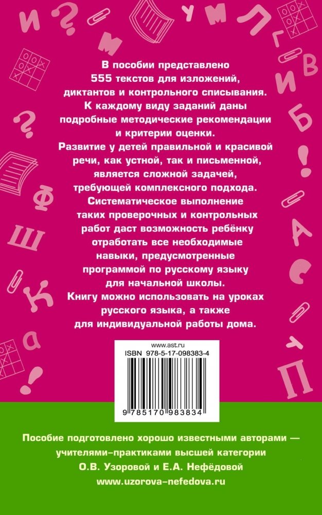 555 изложений, диктантов и текстов для контрольного списывания. 1-4 классы