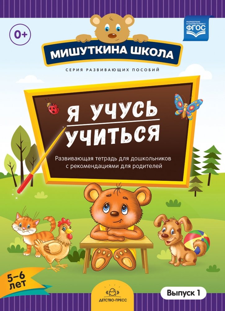 Мишуткина школа. Я учусь учиться (с 5 до 6 лет). Выпуск .1 Развивающая тетрадь для дошкольников с методическими рекомендациями для родителей. ФГОС