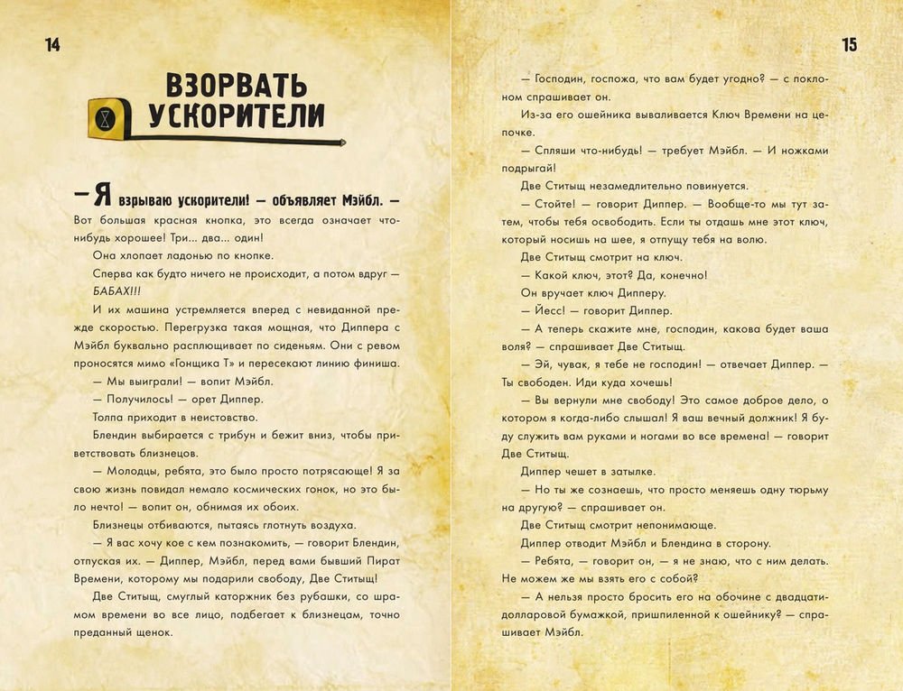 Диппер и Мэйбл вместе с Блендином Блэндином, путешественником во времени, отправляются на поиски сокровищ Пиратов Времени. Их ждут головокружительные и опасные приключения в будущем и в прошлом: на Диком Западе и в Средневековье. Но именно ты выбираешь, куда друзья отправятся дальше и что предпримут, будут ли они грабить поезд, как заправские бандиты из вестерна, или встретятся с драконом в пещере. Только осторожнее, ведь ты можешь привести близнецов не только к сокровищам, но и туда, откуда нет выхода, например, во временной тупик. Перед тобой книга, в который ты сам можешь строить сюжет, выбирать места действия и принимать решения за героев. Путешествуй во времени вместе с Диппером, Мэйбл и Блендином!