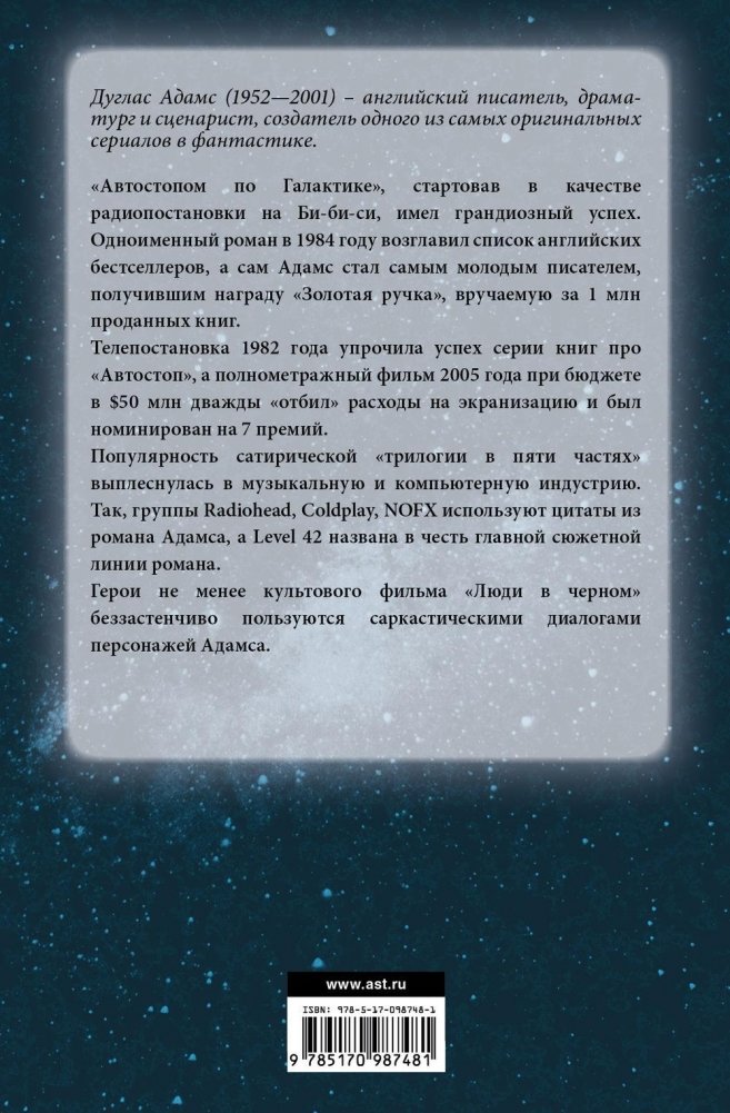 «Автостопом по Галактике», стартовав в качестве радиопостановки на Би-би-си, имел грандиозный успех. Одноименный роман в 1984 году возглавил список английских бестселлеров, а сам Адамс стал самым молодым писателем, получившим награду «Золотая ручка», вручаемую за 1 млн. проданных книг. Телепостановка 1982 года упрочила успех серии книг про «Автостоп», а полнометражный фильм 2005 года при бюджете в $50 млн. дважды «отбил» расходы на экранизацию и был номинирован на 7 премий. Популярность сатирической «трилогии в пяти частях» выплеснулась в музыкальную и компьютерную индустрию. Так, группы Radiohead, Coldplay, NOFX используют цитаты из романа Адамса, а Level 42 названа в честь главной сюжетной линии романа.