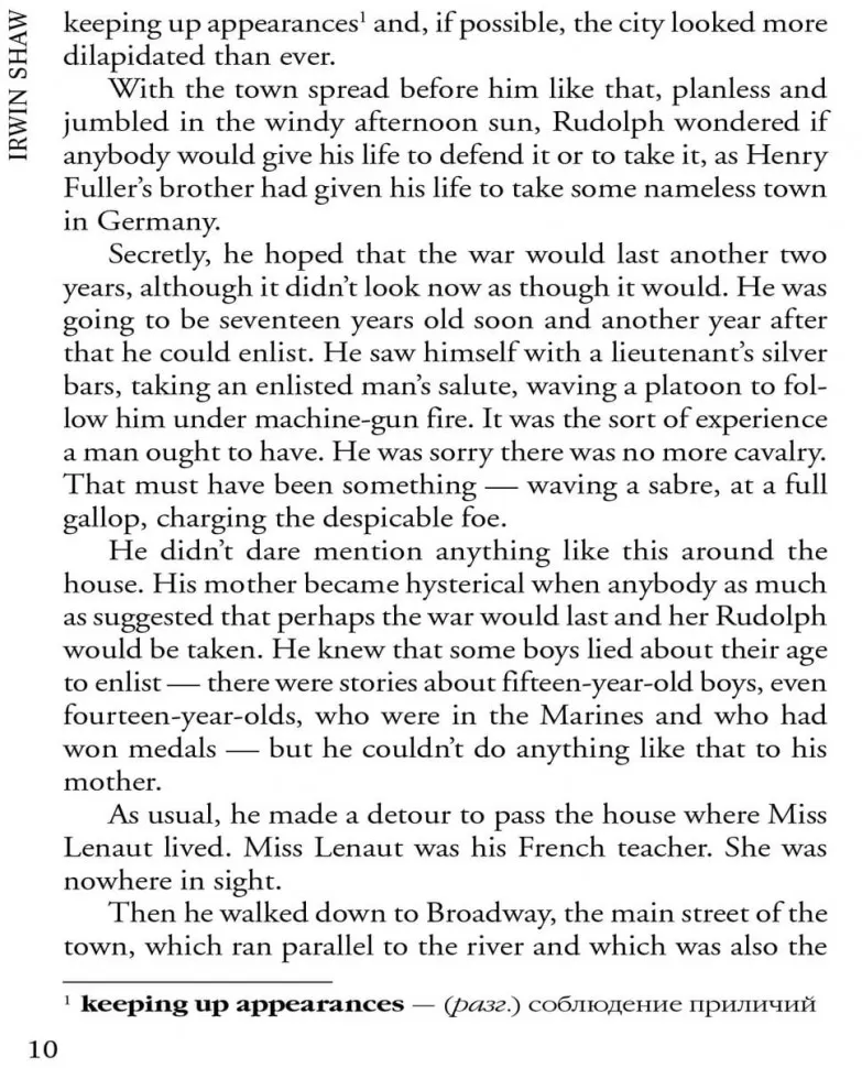 Ирвин Шоу — один из самых популярных писателей нашего времени, автор всемирно известных книг «Богач, бедняк», «Нищий», «Вечер в Византии» и многих, многих других. Его романы не только неизменно становились бестселлерами, многократно переиздавались и экранизировались, но и вошли в золотой фонд литературы ХХ века. Писатель обладал поистине уникальной способностью соединять в своих произведениях глубину, увлекательность напряженной интриги и поразительное знание человеческой психологии. В самом популярном романе «Богач, бедняк» описывается жизнь представителей одной семьи на протяжении нескольких десятилетий. Острый, увлекательный сюжет, изумительно выписанные характеры героев, объективная картина жизни послевоенной Америки — все это обеспечило популярность книги среди нескольких поколений читателей. Текст, снабженный постраничными комментариями и словарем, приводится с незначительными сокращениями.