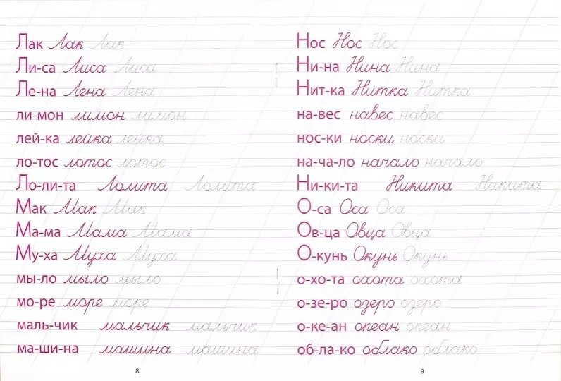Пишем слова серии "Каллиграфическая пропись"