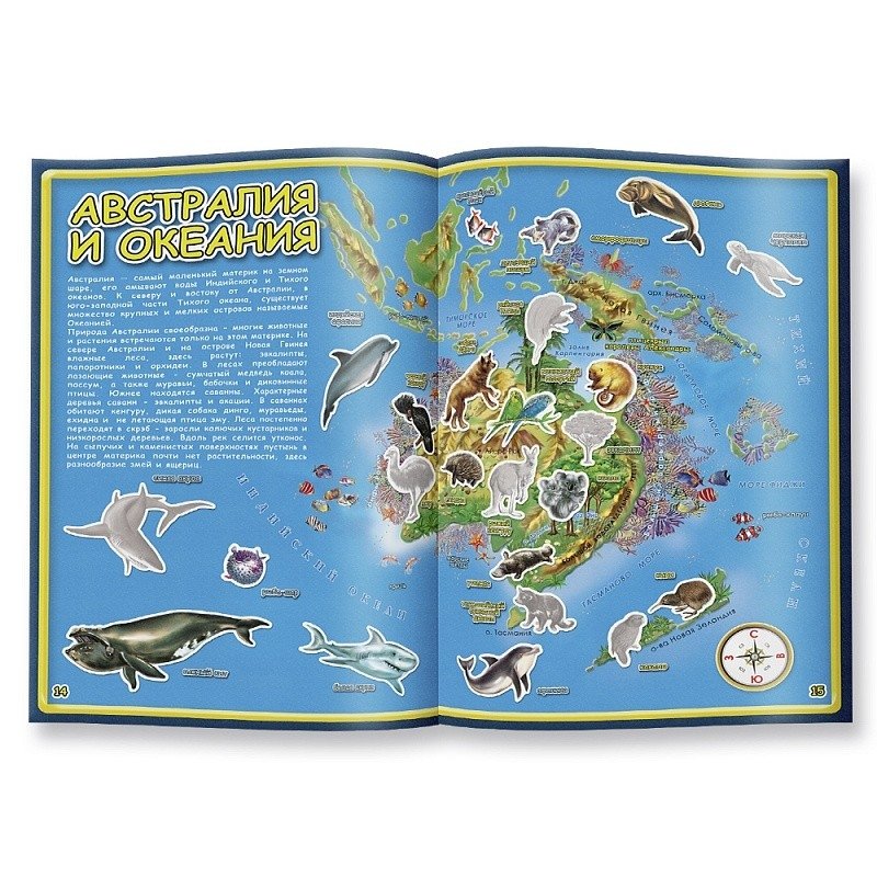 Новогодний подарок для любознательных. Животный мир Земли. Атлас с наклейками+игра-ходилка