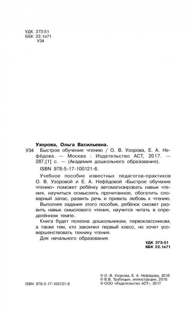 Учебное пособие известных педагогов-практиков О.В. Узоровой и Е.А. Нефёдовой «Быстрое обучение чтению» поможет ребёнку автоматизировать навык чтения, научиться осмыслять прочитанное, обогатить словарный запас, развить речь и привить любовь к чтению. Выполняя задания этого пособия, ребёнок сможет развить навык смыслового чтения, научится читать в определенном темпе. Книга будет полезна дошкольникам, первоклассникам, а также тем, кто закончил первый класс, но хочет усовершенствовать технику чтения. Для начального образования.