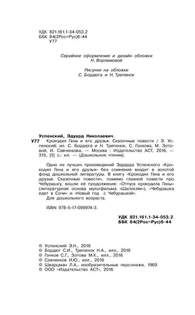Крокодил Гена и Чебурашка - персонажи, любимые детьми уже много десятилетий. В этой книге собраны сказочные повести Эдуарда Успенского "Чебурашка", "Отпуск крокодила Гены", "Чебурашка едет в Сочи", "Новый год с Чебурашкой".