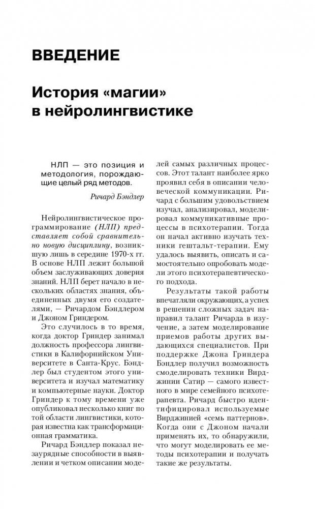 Данное пособие достигает того, что не удавалось до сих пор ни одной книге: оно систематически, последовательно и исчерпывающе объясняет, что такое НЛП и как грамотно использовать приемы этого знаменитого направления в практической психологии и психотерапии. Отлично структурированное и профессионально организованное, отличающееся широким набором упражнений и методов, способствующих надежному усвоению материала, издание предоставляет читателю превосходную возможность получить все лучшее из НЛП как для удовлетворения первого любопытства, так и для повышения своей профессиональной квалификации до уровня Практик НЛП. Майкл Холл и Боб Боденхамер – сертифицированные мастера и тренеры НЛП, одни из самых известных международных авторов и практикующих консультантов и психотерапевтов современности.