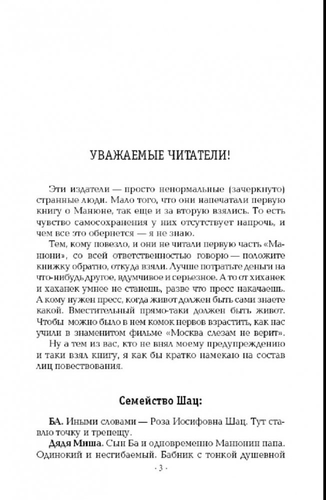 Перед вами долгожданное продолжение лучшей в мире книги о детстве – романа Наринэ Абгарян «Манюня». Всем, кто уже успел узнать и полюбить смешных подружек-хулиганок Нару и Манюню, суровую, но обаятельную Ба – бабушку Манюни и ораву их шумных и несуразных родственников, а также тем, кому это ужасно приятное знакомство только предстоит, мы дарим книжку о новых приключениях Манюни! Если вы думаете, что знаете, на что способны две девчонки младшего школьного возраста, которым не сидится на месте и хочется провести детство так, чтобы ни одна его минута не прошла скучно, то вы еще ничего не знаете… Читайте и ужасайтесь, то есть наслаждайтесь, конечно!