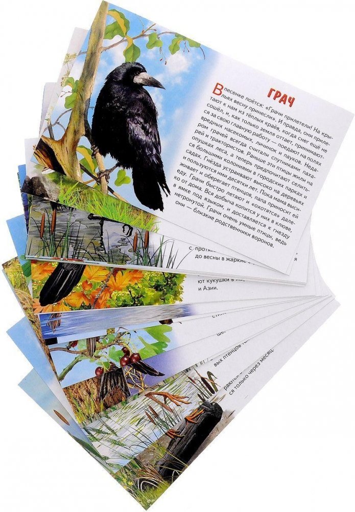 Развивающие карточки знакомят детей дошкольного и младшего школьного возраста с окружающим миром. Кроме изображения животных и птиц содержат общие сведения о них и отличительные черты их поведения.