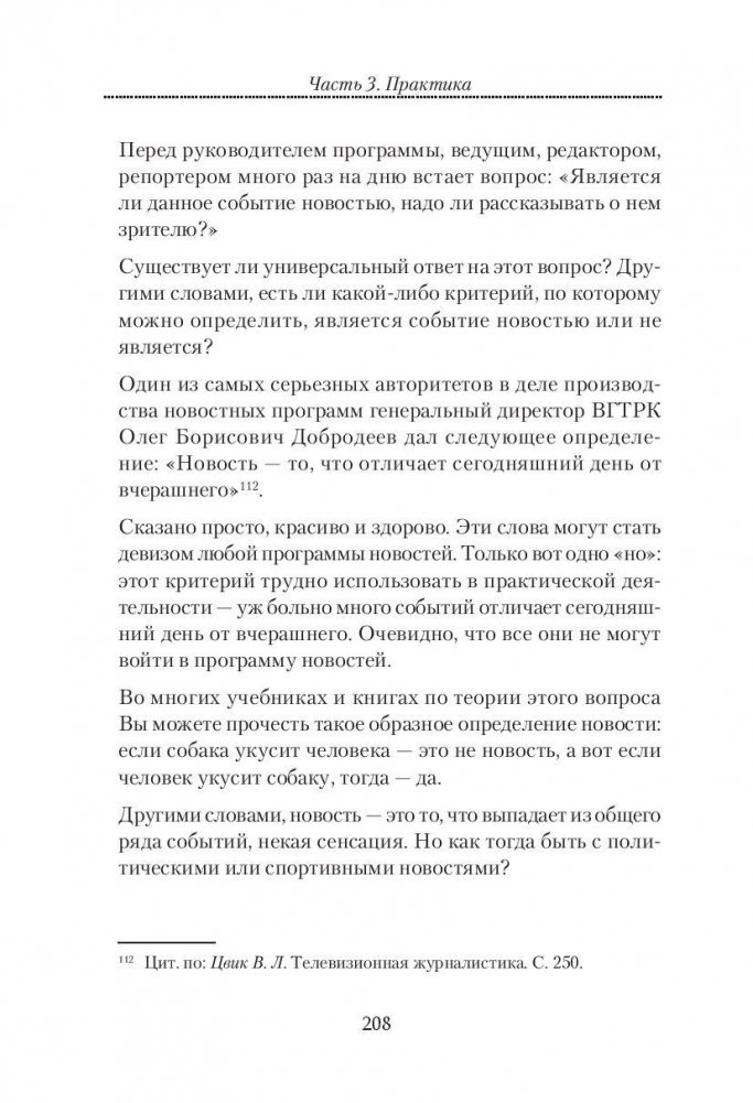 Книга «Журналист ТВ? Это просто!» написана известным российским телеведущим и писателем, членом Академии российского телевидения, неоднократным обладателем высшей национальной телевизионной премии ТЭФИ Андреем Максимовым. Что это за книга? Учебное пособие для всех, кто выбрал делом своей жизни тележурналистику? Без сомнения. В ней много практических советов, собран очень большой фактический материал. Но, с другой стороны, эта книга о том, как делается телевидение, о тех заэкранных процессах, которые зритель не видит, но про которые ему очень интересно узнать. Автор открывает многие тайны телевидения. Как делается ток-шоу? Как выбирают героев для телеинтервью? Как выстраиваются отношения между телеведущим и съемочной группой? Что это за специальный человек, который вызывает аплодисменты зрительного зала? Зачем ведущему телесуфлер? Ответы на эти и многие другие вопросы Вы найдете на страницах книги. Так что книга «Журналист ТВ? Это просто!» будет интересна и тем, кто решил связать свою жизнь с тележурналистикой, и всем любопытным зрителям, которые хотят узнать телевидение изнутри.