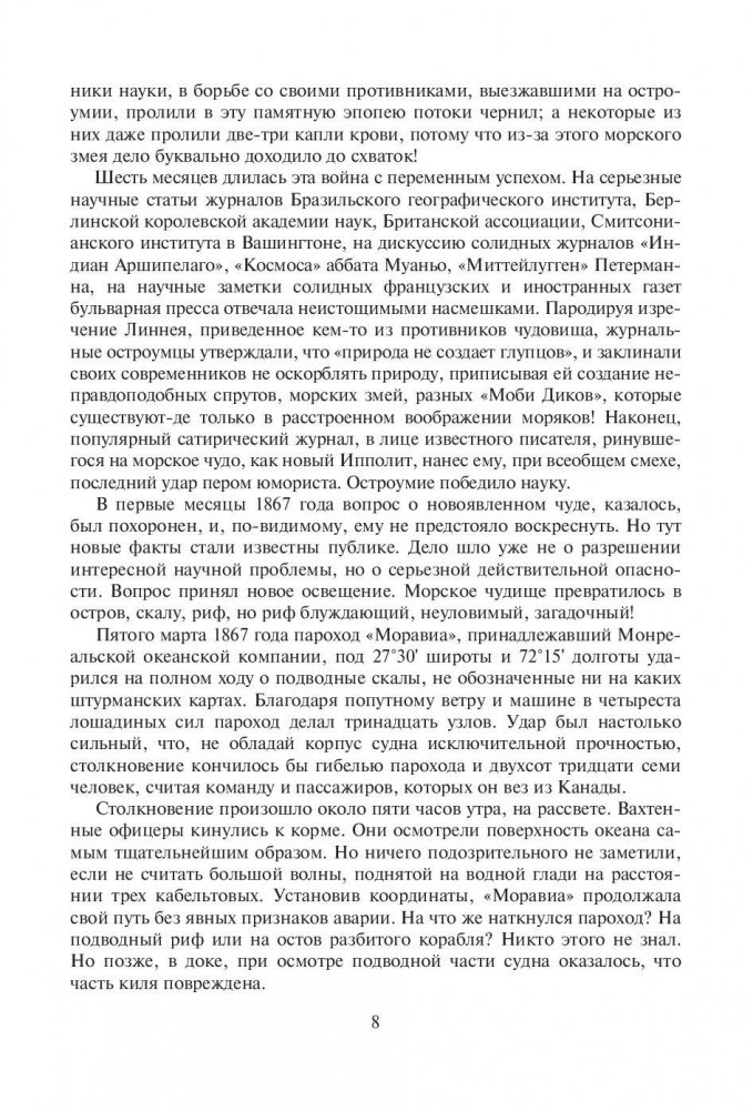 В море обнаружено огромное, неизвестное науке чудовище! То ли гигантский глубоководный кальмар, то ли разновидность кита. Профессор биологии Аронакс в составе международной экспедиции отправляется на охоту за этим ужасным созданием, а в итоге вместе со своим слугой Конселем и канадским гарпунером Недом Лендом оказывается пленником на борту «Наутилуса» — невероятного по своим техническим возможностям подводного корабля, созданного инженерным гением своего хозяина — капитана Немо. В настоящем издании воспроизводится полный комплект из 111 иллюстраций известных французских художников А. де Невилля и Ж. Ру.