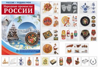 Россия - Родина моя. Народные промыслы России. Папка. 10 демонстрационных карт. 12 раздаточных карт. 2 закладки