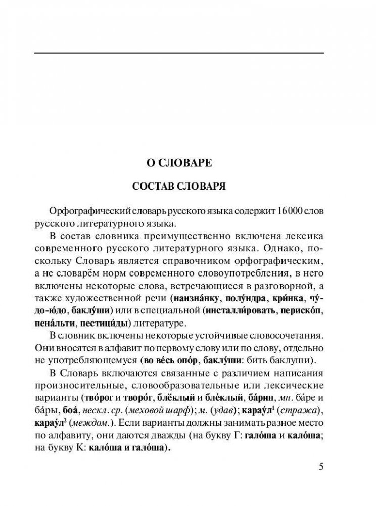 Словарь содержит более 30 000 слов современного русского языка и включает в себя Орфографический словарь, а также списки слов, расположенные по следующим рубрикам: «Прописная или строчная», «Н или НН», «НЕ и НИ», «ПРЕ- и ПРИ-», «РОЗ- и РОС-», «Слова, которые нужно запомнить» (так называемые «словарные» слова), «Мужские имена и отчества», «Женские имена», «Города России и названия их жителей». Отличительной особенностью словаря являются помещенные в конце «Краткие грамматические сведения с таблицами склонения и спряжения слов» и «Основные правила русской орфографии». Словарь адресован учащимся старших классов школ, гимназий, лицеев, студентам колледжей, а также всем, кто хочет грамотно писать по-русски.