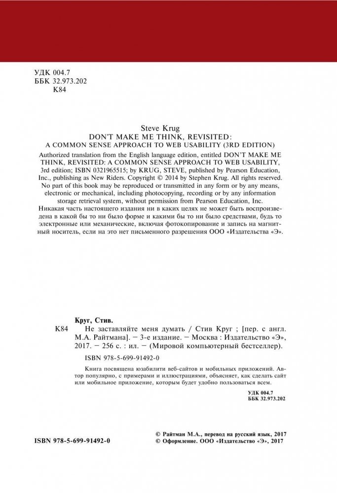 Книга посвящена юзабилити веб-сайтов и мобильных приложений. Автор популярно, с примерами и иллюстрациями, объясняет, как сделать сайт или мобильное приложение, которым будет удобно пользоваться всем.
