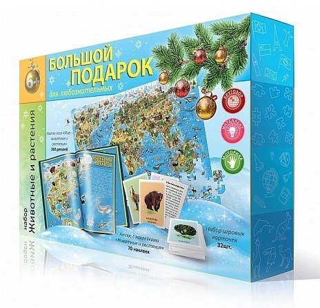 Большой подарок. Животные и растения. Пазл 260 деталей + Атлас с наклейками + Игровые карточки