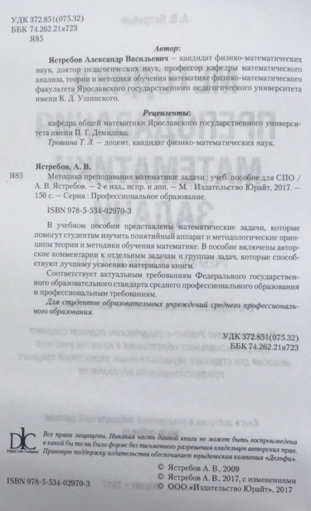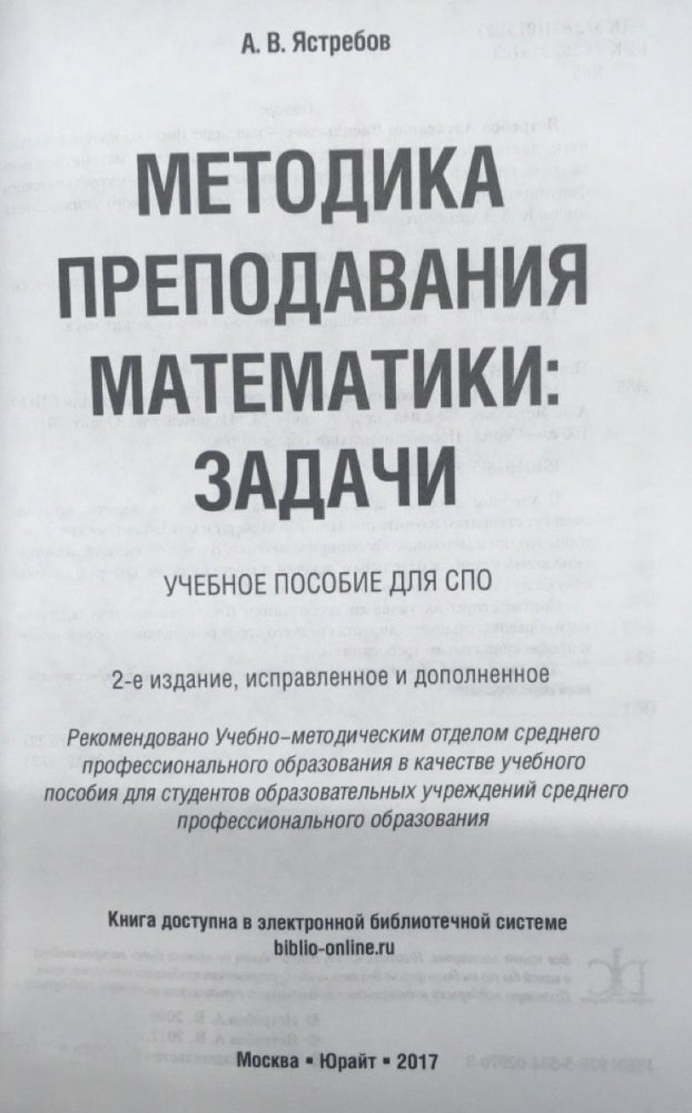 Методика преподавания математики: задачи. Учебное пособие для СПО