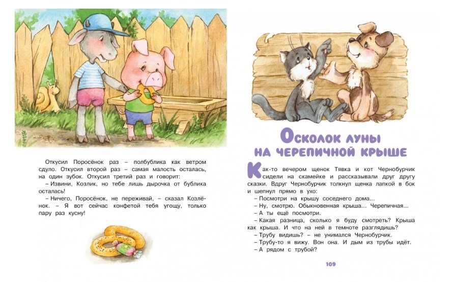 Вы думаете, чудес на свете не бывает? А вот и неправда! В книжке известного писателя Михаила Пляцковского чудеса на каждой странице. Разве не удивительно, что звери бывают разноцветными? А что вы скажете, если встретите ёжика, которого можно погладить? И уж совершенно невероятно – увидеть осколок луны на черепичной крыше!