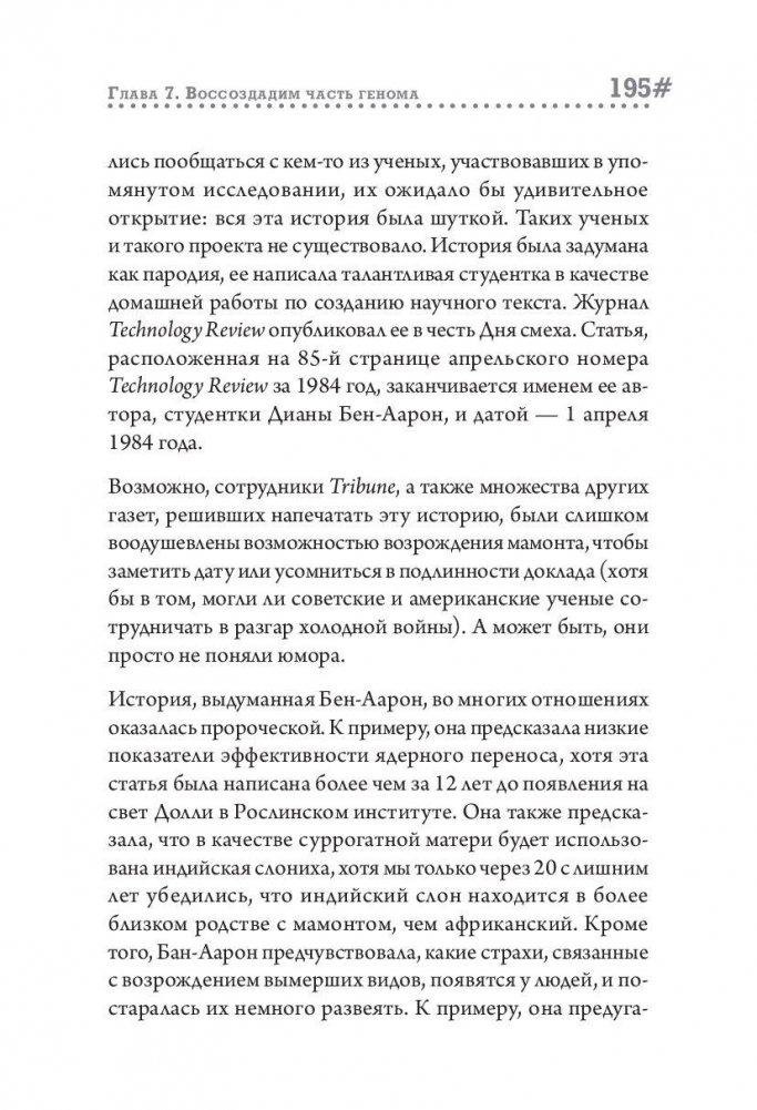 Мы мечтаем жить вечно. Надеемся, что сможем клонировать любимого домашнего питомца, как это произошло с овечкой Долли. Хотим прогуляться по "парку юрского периода", посмотреть на динозавров и мамонтов, увидеть вымерших моа, дронтов, и других существ. Бет Шапиро - профессор факультета экологии и эволюционной биологии Университета Санта-Круз в Калифорнии - рассказывает нам увлекательную историю современной науки воссоздания видов. Как только любой организм умирает, его ДНК тут же начинает разрушаться под воздействием ультрафиолета и бактерий, поэтому нельзя просто так взять клетку и клонировать вымершее животное. Исследователям приходится заниматься сложной задачей - они пытаются сложить пазл, в котором часть кусочков ДНК потерялась. Давайте разбираться, нужно ли нам возрождать исчезнувшие виды (Бет Шапиро уверена, что стоит), какие трудности ожидают нас на этом пути и к чему это может привести.