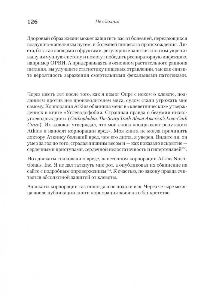 Как показывают исследования, питание и образ жизни важнее таблеток и скальпеля хирурга. Преждевременной смерти можно избежать, если слегка скорректировать свои пищевые пристрастия и образ жизни. Врачи героически борются с серьезными и хроническими болезнями, но ничего не могут сделать для их профилактики. Миллионы людей ежегодно умирают от 15 основных заболеваний. Следуйте советам доктора Грегера и узнайте, какие продукты следует есть именно вам и как изменить образ жизни, чтобы жить дольше. Питайтесь правильно, уверяет доктор Грегер, и вам не понадобятся ни операции, ни таблетки!