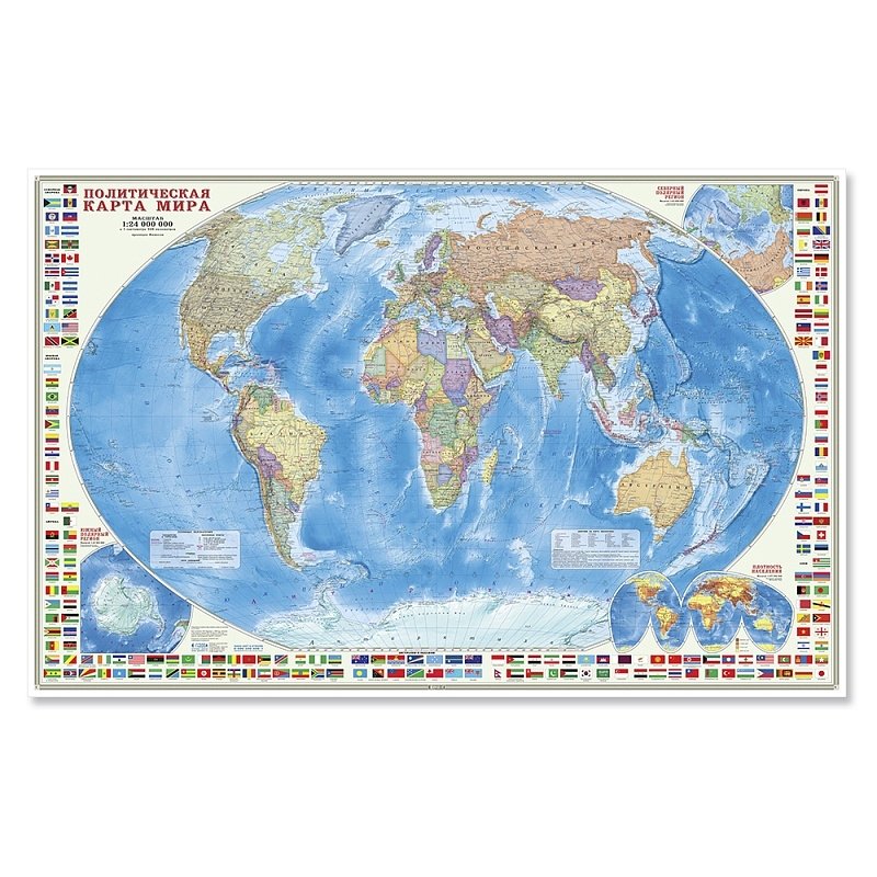 Политическая карта мира с флагами. Настенная карта (масштаб 1:24 млн)
