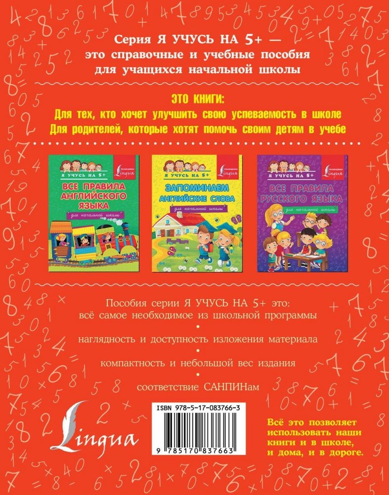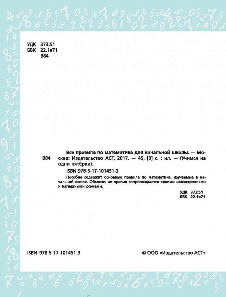 Пособие содержит основные правила по математике, изучаемые в начальной школе. Объяснение правил сопровождается яркими иллюстрациями и наглядными схемами.