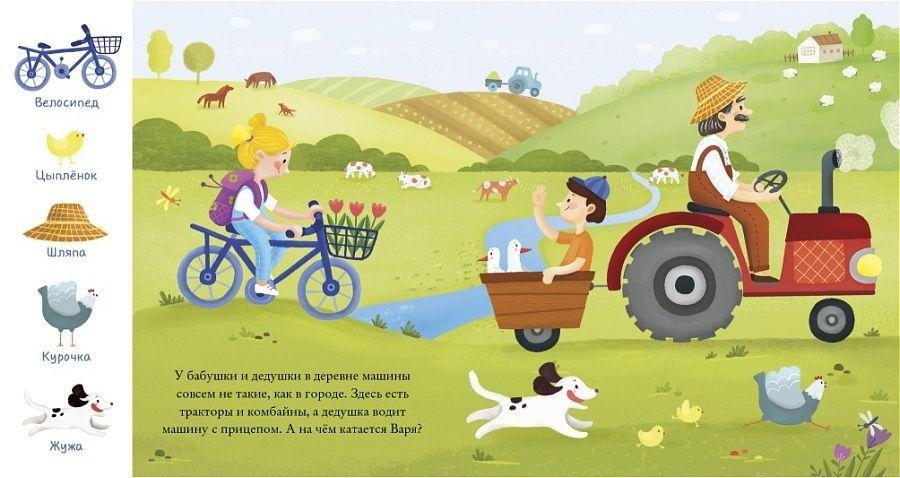 Петя и Варя приехали на море! Они так рады! Здесь весь транспорт ходит по воде: лодка, катер, гигантский теплоход. Даже велосипед здесь водный, но педали крутить все равно надо. В этой замечательной книжке красочные иллюстрации с крупными элементами, коротким и доступным текстом — все для того, чтобы кроха с удовольствием учился. Рассматривайте вместе картинки, ищите предметы, вынесенные на край страницы, а шустрая собачка Жужа не даст заскучать, она будет сопровождать вас на протяжении всего путешествия. Книжку приятно брать в руки: странички плотные, а иллюстрации красочные и яркие. Пока ребенок рассматривает картинки и ищет предметы, он будет знакомиться с окружающим миром и узнает много интересного о машинах, лодках, пароходах, трамваях и поездах. Вы и сами будете с удовольствием рассматривать книгу. Ведь самое важное — ваши совместные занятия с малышом.