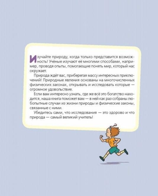 Первая часть книги посвящена наблюдениям в природе и опытам, которые помогут понять и объяснить происходящее: почему дерево всегда растёт вверх, дятел не падает с вертикального ствола, а улитка с гладкой стены? Наблюдайте природные явления и ставьте опыты, моделируя их. Вторая часть откроет вам мир химии: какие бывают превращения веществ и из чего они состоят, что такое растворы и почему так важна эта наука. Здесь есть простые, но очень интересные опыты, а есть такие, которые нужно ставить только в химической лаборатории или со взрослыми. К проведению экспериментов придётся подготовиться: понадобится спецодежда, вы ведь настоящие химики! В третьей части вы узнаете, какие разные микроорганизмы нас окружают, как они устроены, где их можно найти и как рассмотреть. Вы убедитесь, что хоть они и крошечные, значение их трудно переоценить. Авторы книги, Томислав Сенчански и Татьяна Михайлов-Крстев, – учёные. Они не только ведут научные исследования и обучают студентов, но занимаются с детьми, помогая им открыть удивительный мир, управляемый законами природы. Для среднего школьного возраста.