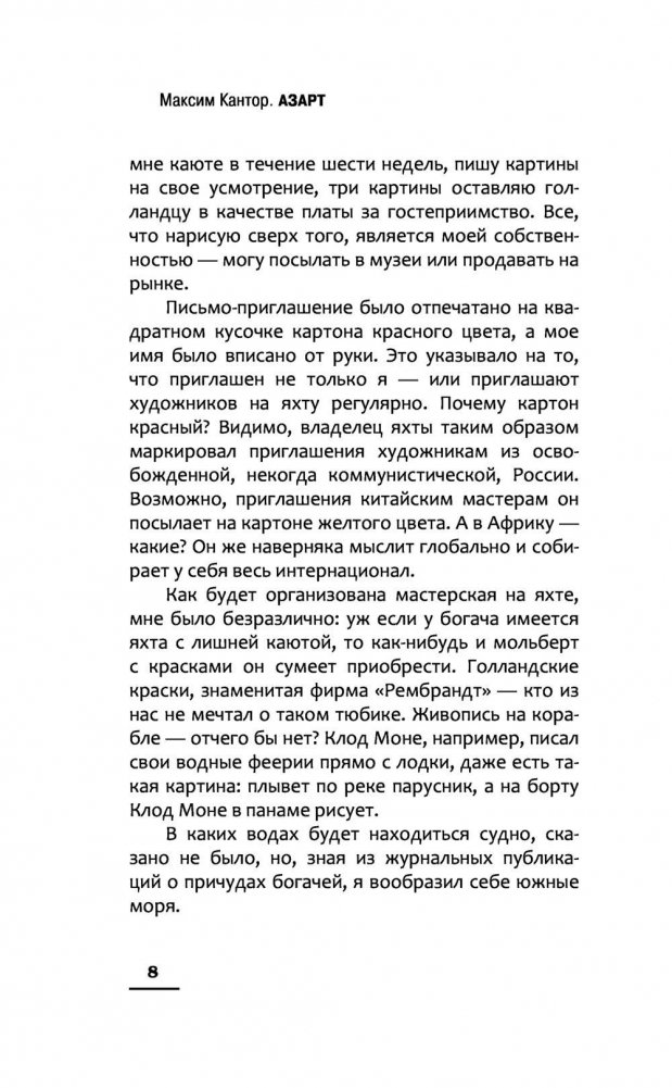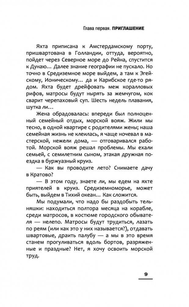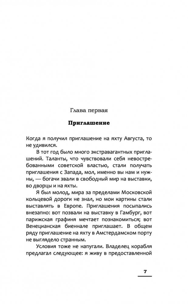 Молодой андеграундный художник, после развала Советского Союза становится востребованным в Европе. Его картины выставляют в галереях, а сам он получает бесконечные приглашения на творческие встречи и биеннале. Поэтому он не удивляется, когда богатый ценитель современного искусства предлагает ему пожить шесть недель у него на яхте в своеобразной творческой коммуне. Герой с женой и семилетним сыном покидают тесную городскую квартиру и отправляются навстречу соленому морскому бризу, нежному шуму волн и теплому солнцу. Но, прибыв в Амстердам, художник обнаруживает что яхта – это ржавая посудина со сломанным мотором и пробоиной в борту. Денег на ее починку ни у кого нет, а творческая коммуна – это оксфордский историк, левая активистка, лысый актер с Таганки, сербский поэт с мировым именем, аргентинский торговец комбайнами, музыкант, играющий на жестяных банках и еще с полдюжины самых странных персонажей. Герои, с одной стороны, пытаются починить корабль и уплыть, а с другой, постепенно распродают его по частям ради еды и выпивки. А сам роман при этом неожиданно превращается в притчу о строительстве ковчега и месте человека в этом мире.