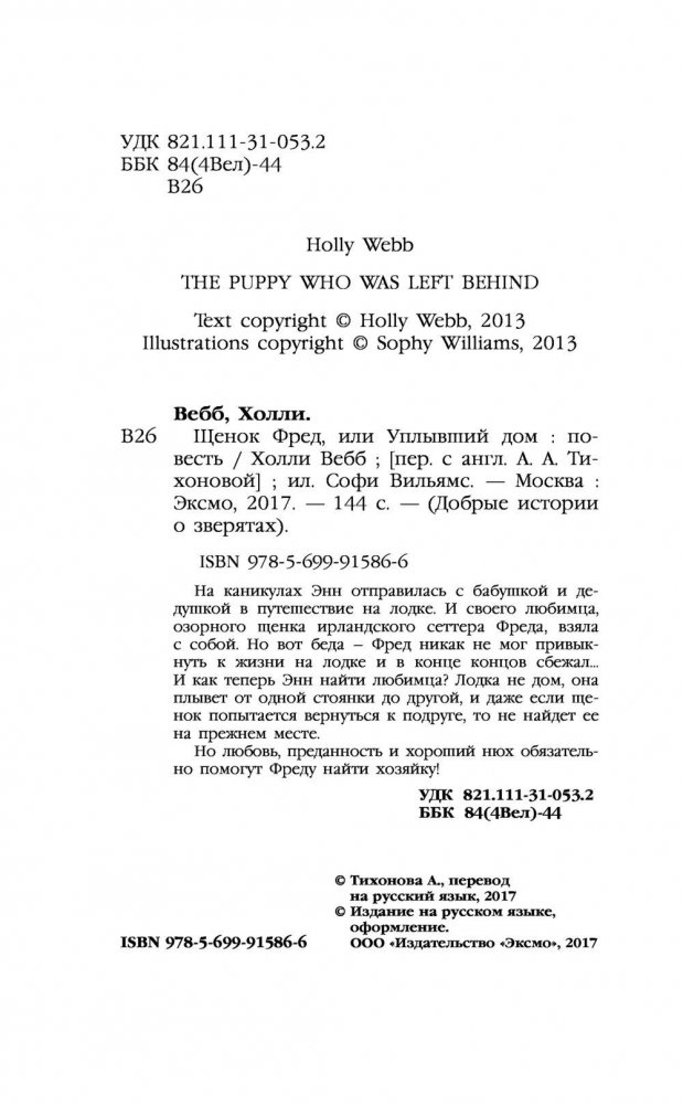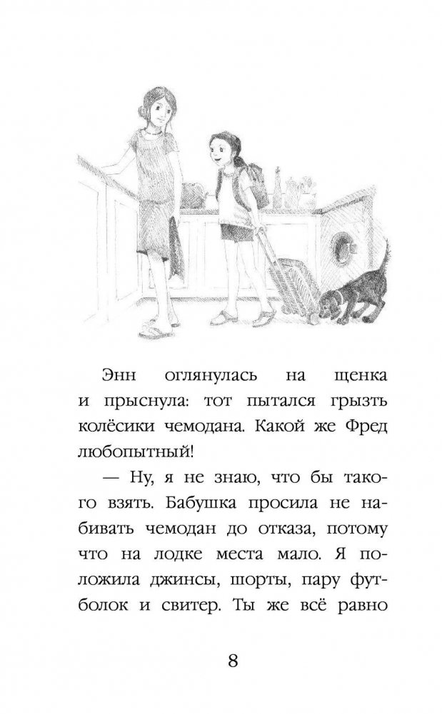 На каникулах Энн отправилась с бабушкой и дедушкой в путешествие на лодке. И своего любимца, озорного щенка ирландского сеттера Фреда, взяла с собой. Но вот беда – Фред никак не мог привыкнуть к жизни на лодке и в конце концов сбежал… И как теперь Энн найти любимца? Лодка не дом, она плывет от одной стоянки до другой, и даже если щенок попытается вернуться к подруге, то не найдет ее на прежнем месте. Но любовь, преданность и хороший нюх обязательно помогут Фреду найти хозяйку!