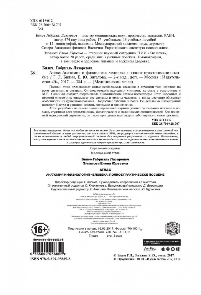 Полный атлас представляет самые необходимые сведения о строении тела человека по всем системам и органам. Он подготовлен ведущими учеными, которые в соавторстве с М.Р. Сапиным создают современные анатомические атласы-бестселлеры. Этот надежный и простой справочник описывает все системы и органы человека, а также доступно объясняет особенности их функционирования. Подробные таблицы и более 150 детальных иллюстраций позволят быстро и успешно освоить анатомию и физиологию. Атлас разработан на основе самых современных научных данных по анатомии человека в помощь студентам всех педагогических, биологических и медицинских специальностей. Как понятный медицинский справочник, он также пригодится всем людям, заботящимся о своем здоровье.