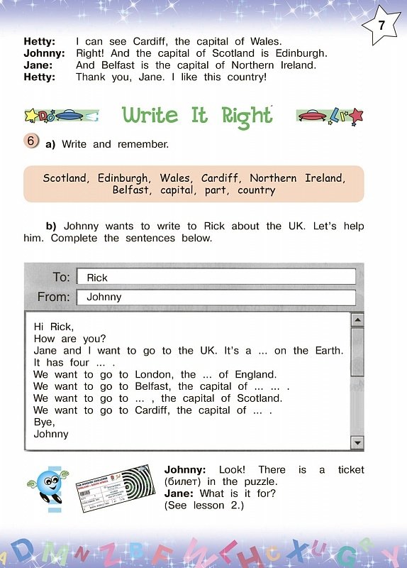 Содержание учебника обеспечивает обучение в контексте коммуникативно-деятельностного, социокультурного и личностно-ориентированного подходов к развитию школьников; включает множество естественных ситуаций общения; создает мотивацию и интерес для учащихся на уроках английского языка.