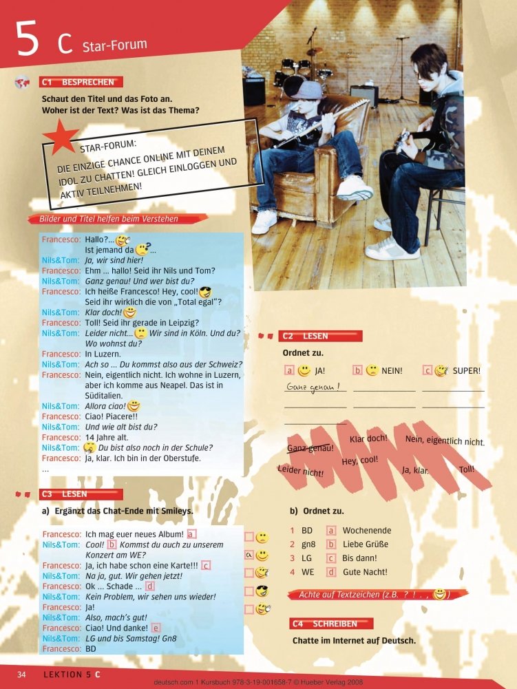 Zielgruppe: Jugendliche und junge Erwachsene im In- und Ausland ohne Vorkenntnisse Lernziel: Führt zur Niveaustufe A1 des Europäischen Referenzrahmens und bereitet auf die Prüfung Fit in Deutsch 1 vor. "deutsch.com" wird von einem jungen, dynamischen Autorenteam entwickelt, dem Prof. Dr. Gerd Neuner beratend und mitarbeitend zur Seite steht. "deutsch.com" steht für die Idee des Gemeinsamen Europäischen Referenzrahmens – das grundlegende Leitmotiv der Mehrsprachigkeit! Das Deutschlernen geschieht „im Kopf“ der Lernenden in einem Kontext von Mehrsprachigkeit. Das bedeutet, dass sowohl die bereits erlernte(n) Fremdsprache(n) als auch die Muttersprache zum Erlernen einer weiteren Fremdsprache genutzt werden können. Vor diesem Hintergrund sind sowohl die Sprachvermittlung als auch der Spracherwerb zu sehen. Ziel ist es, effiziente und zeitsparende Lehr- und Lernverfahren anzubieten. "deutsch.com" bezieht den Lernenden aktiv in das Lehren und Lernen ein! Vorhandenes sprachliches Wissen aus der Muttersprache und der bereits erlernten Fremdsprache wird aktiviert und transferiert. Gemeinsamkeiten und Unterschiede werden herausgearbeitet und erkannt. Dies bezieht sich ebenso auf den Grundwortschatz wie auf elementare Grammatikkenntnisse. Bereits vorhandene Lerntechniken und -strategien werden ins Bewusstsein gerufen, eingesetzt und erweitert. "deutsch.com" ist in der Welt der Jugendlichen zu Hause! Aus überraschenden Perspektiven breitet deutsch.com ein reiches Panorama von Lebensformen und -realitäten Jugendlicher in Deutschland aus und folgt doch dabei den Themen der Niveaustufen. So transportiert das Lehrwerk landeskundliche Informationen mit jugendgerechten Inhalten. Moderne Textsorten, auch aus dem Internet (Internetportale und -profile, Chats, Foren, Blogs) präsentieren einen authentischen deutschen Sprachgebrauch.