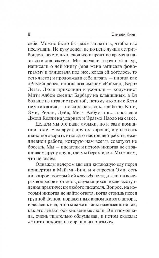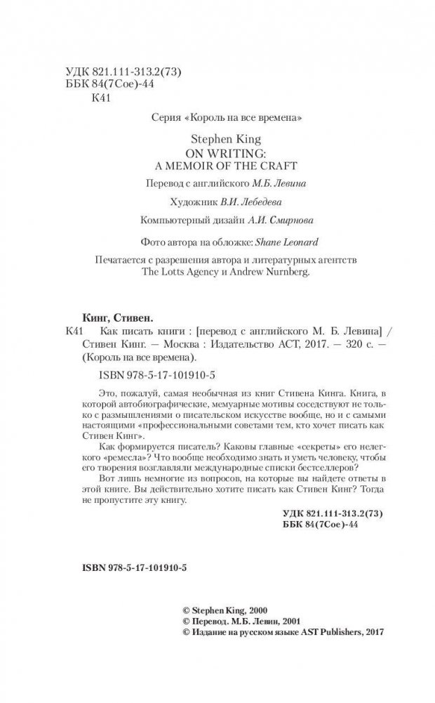 Это – пожалуй, самая необычная из книг Стивена Кинга. Книга, в которой автобиографические, мемуарные мотивы соседствуют не только с размышлениями о писательском искусстве вообще, но и самыми настоящими «профессиональными советами тем, кто хочет писать, как Стивен Кинг». Как формируется писатель? Каковы главные «секреты» его нелегкого «ремесла»? Что, строго говоря, вообще необходимо знать и уметь человеку, чтобы его творения возглавляли международные списки бестселлеров? Вот лишь немногие из вопросов, на которые вы найдете ответы в этой книге. Вы действительно «хотите писать, как Стивен Кинг»? Тогда не пропустите эту книгу.