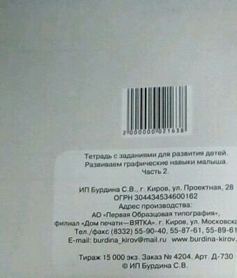 Развиваем графические навыки малыша. Рабочая тетрадь. Часть 2