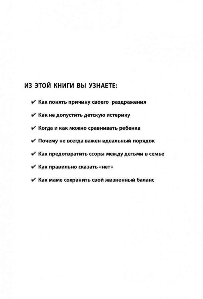 Если мама в ярости трясет ребенка — она разрушает его. Если мама сохраняет маску спокойствия в момент, когда внутри кипит ярость, — она разрушает себя. Как с этим справиться и как этого избежать? Анна Быкова — педагог, психолог и автор книг-бестселлеров серии "Ленивая мама" — объясняет, как важно маме уметь возвращать себя в состояние душевного спокойствия. Только из точки покоя адекватно разрешаются детские конфликты, находятся слова для убеждений, утешений, уговоров. Только спокойная мама может быть тем человеком, которому доверяющий ребенок будет нести все свои проблемы и щедро выплескивать свое эмоциональное напряжение.
