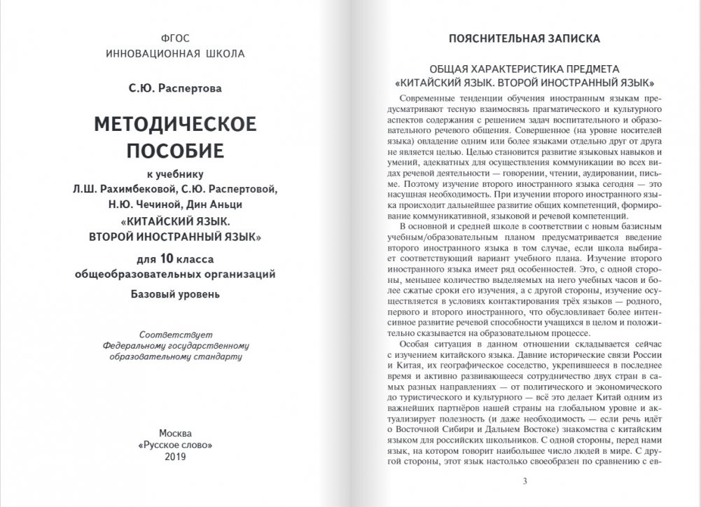Методическое пособие к учебному изданию Л.Ш. Рахимбековой, С.Ю. Распертовой, Н.Ю. Чечиной, Дин Аньци «Китайский язык. Второй иностранный язык». 10 класс. Базовый уровень