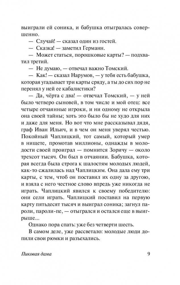 «Пиковая дама» – одна из самых загадочных повестей А.С. Пушкина. Одноименная опера П.И. Чайковского, регулярные театральные постановки и солидное количество экранизаций красноречиво свидетельствуют о невероятной популярности этого произведения, а знаменитые «тройка, семерка, туз» известны даже тем, кто незнаком с историей Германна. Не уступают в популярности и литературной значимости и поэмы «Полтава», «Медный всадник», «Руслан и Людмила» – совершенно разные в сюжетном отношении произведения объединяет читательская и зрительская любовь, будь то постановки на сцене, кинокартины на экране или чтение оригинала. В состав сборника также входят и другие прозаические и поэтические шедевры, без которых невозможно составить представление о столь разнообразном творчестве великого поэта.