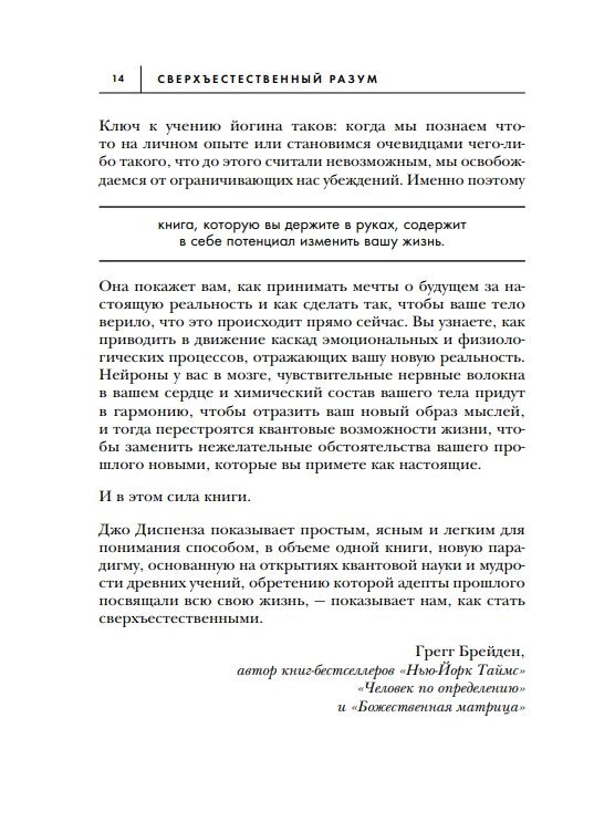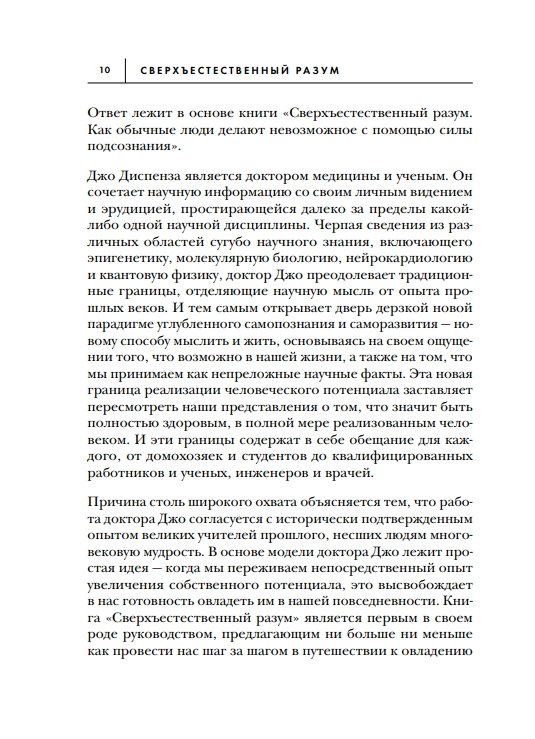 Автор бестселлеров "Сила подсознания" и "Сам себе плацебо" рассказывает об исследованиях, проводящихся на его продвинутых семинарах с 2012 года, посвященных тому, как обычные люди делают невозможное с помощью силы подсознания, чтобы трансформировать себя и свою жизнь. Используя знания в области эпигенетики, молекулярной биологии, нейрокардиологии и квантовой физики, доктор Джо Диспенза преодолевает традиционные границы медицины и доказывает, что человек, в буквальном смысле, сверхъестественен по своей природе, если обладает соответствующими знаниями и навыками.