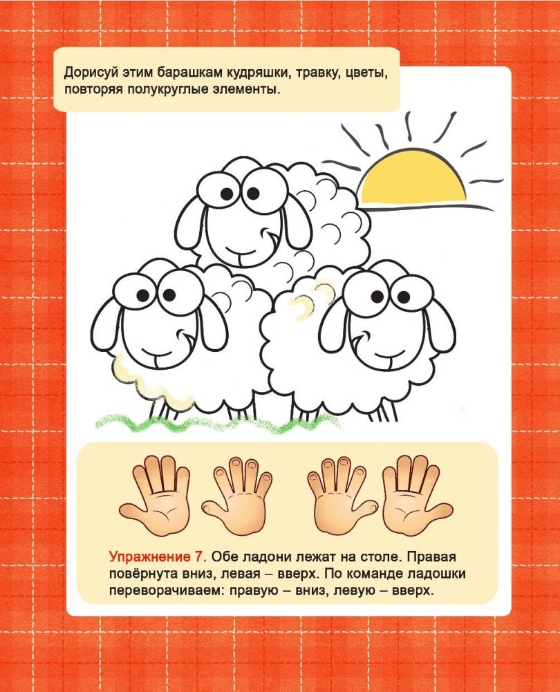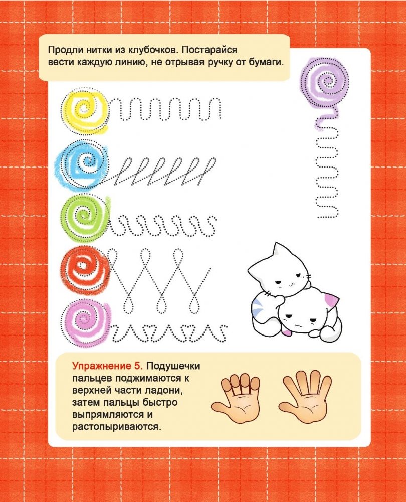 Материал пособия подобран с учетом психофизиологических особенностей старших дошкольников. Использование игровых ситуаций, многократное переключение внимания ребенка с одного графического упражнения на другое и их разнообразие направлено на то, чтобы снять напряжение, предотвратить утомляемость и повысить познавательный интерес ребенка к графической деятельности. Включение в занятия специальной пальчиковой гимнастики позволяет достичь хорошего развития мелкой моторики рук, которая оказывает благоприятное влияние на развитие речи и подготавливает ребенка к занятиям в школе. Кисти рук приобретают хорошую подвижность, гибкость, исчезает скованность движений, что облегчает приобретение навыков письма. Специально заставлять ребенка не придется, ведь упражнения находятся прямо перед его глазами, и малыш непроизвольно сам будет с удовольствием делать их вместе с другими заданиями на странице.