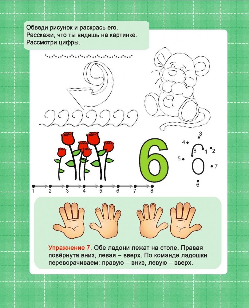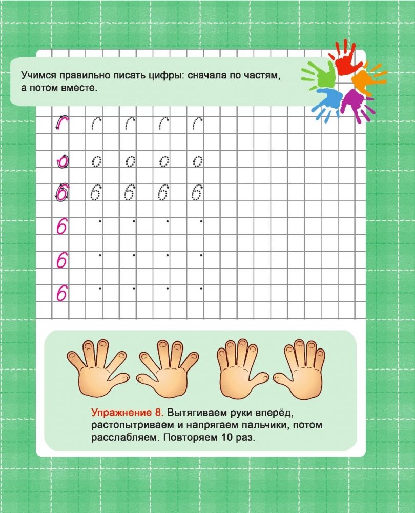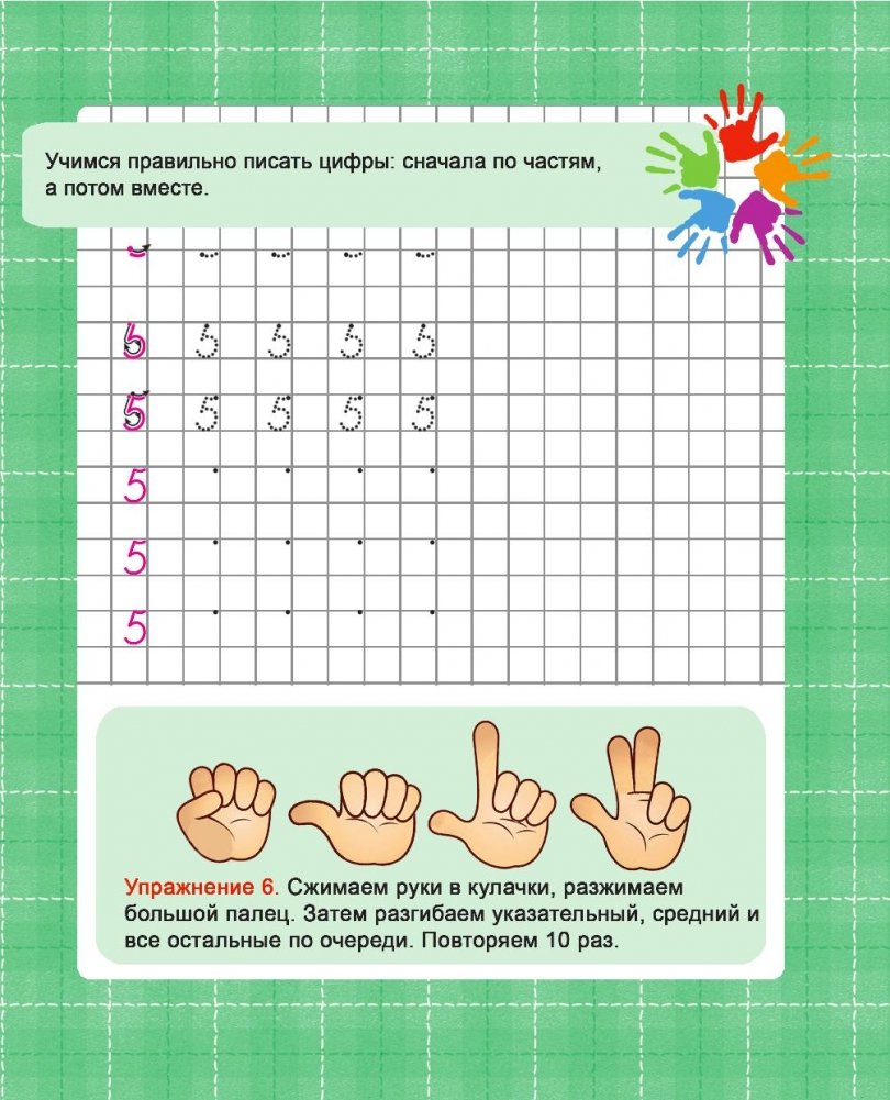 Материал пособия подобран с учетом психофизиологических особенностей старших дошкольников. Использование игровых ситуаций, многократное переключение внимания ребенка с одного графического упражнения на другое и их разнообразие направлено на то, чтобы снять напряжение, предотвратить утомляемость и повысить познавательный интерес ребенка к графической деятельности. Включение в занятия специальной пальчиковой гимнастики позволяет достичь хорошего развития мелкой моторики рук, которая оказывает благоприятное влияние на развитие речи и подготавливает ребенка к занятиям в школе. Кисти рук приобретают хорошую подвижность, гибкость, исчезает скованность движений, что облегчает приобретение навыков письма. Специально заставлять ребенка не придется, ведь упражнения находятся прямо перед его глазами, и малыш непроизвольно сам будет с удовольствием делать их вместе с другими заданиями на странице.