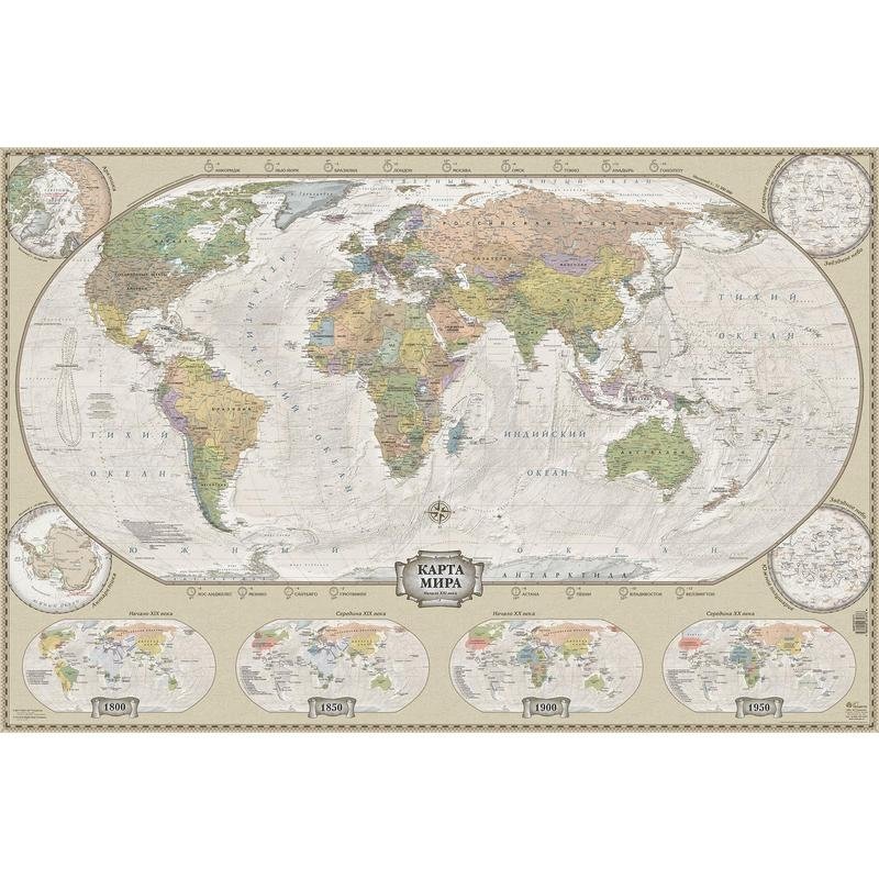 Настенная карта "Политическая карта Мира", 1:35,3 млн, ретро стиль