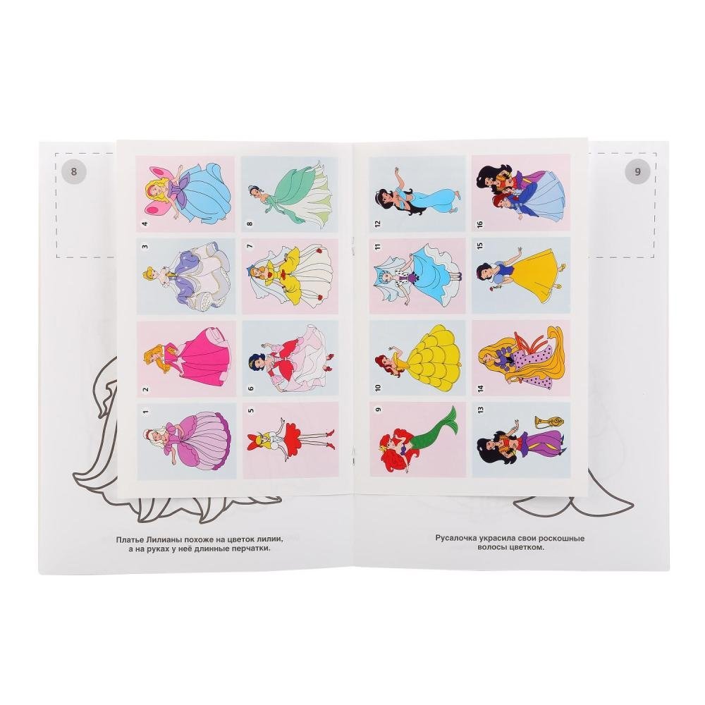 Принцессы. Раскраска по номерам. 16 наклеек