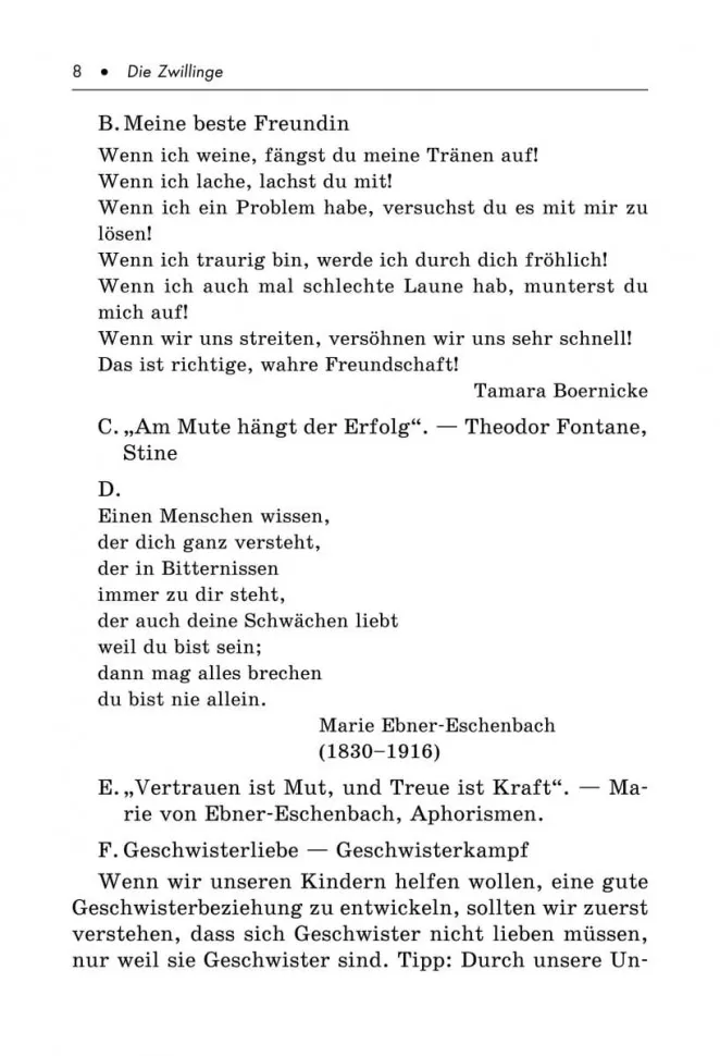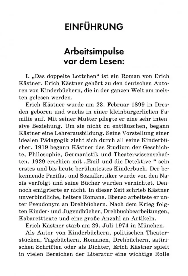 «Близнецы» — одна из всемирно известных детских книг выдающегося немецкого писателя XX века Эриха Кестнера, автора многочисленных повестей и сатирических стихов. Уже более полувека книга и снятый по ней фильм пользуются неизменным успехом не только среди детей, но и среди взрослых. История о том, как две девочки, случайно встретившиеся в летнем лагере и понявшие, что они сестры-близнецы, пытаются помирить родителей, никого не оставляет равнодушным, ведь проблема взаимоотношений детей и родителей, их ответственности друг за друга актуальна и сегодня. Дополнительно подготовлено аудио с носителями языка.