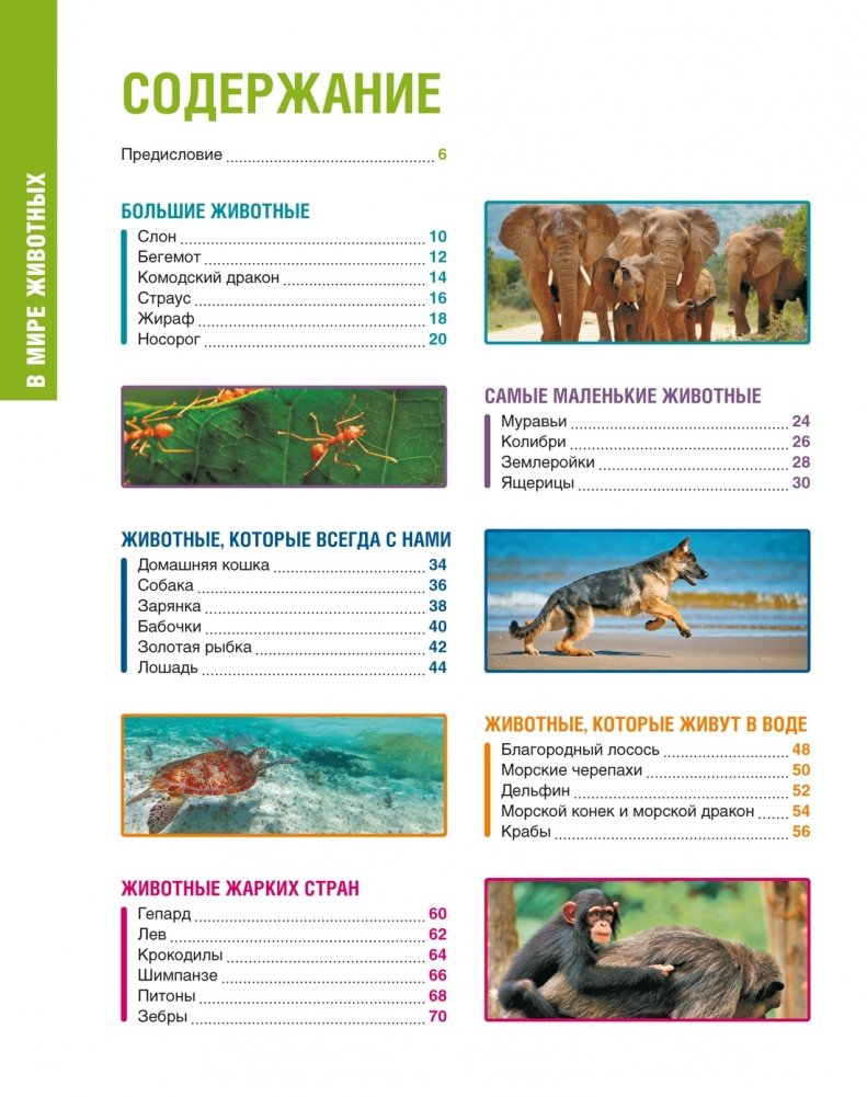 Эта книга позволит вам прикоснуться к удивительному миру животных. Вы узнаете много нового о необычных и редких существах, например раках-отшельниках, которые дружат с актиниями, или морских драконах, похожих на пучок водорослей. Вас ждет встреча со старыми знакомыми: зеброй, жирафом, домашней кошкой. Для этой энциклопедии мы выбрали несколько десятков видов, которые дают представление о всем многообразии и богатстве мира живых существ, населяющих нашу уникальную планету.
